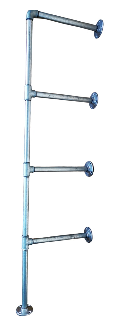 Enhance your F-Shape 15mm Pipe Frame Shelf kit with our standard galvanised finish or elevate its style with a custom color of your choice. For a luxurious touch, we suggest using Rustoleum from Builders Warehouse, offering an array of elegant shades. Additionally, opt for a sleek black powder coating, with a lead time of 10 days before shipping.